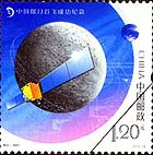 《中國探月首飛成功紀念》郵票1套1枚,圖案為“嫦娥一號”探月衛(wèi)星圍繞著月球飛行在蔚藍的星空中,面值為1.20元,規(guī)格為36毫米×36毫米,齒孔度數(shù)為13度,采用壓凸工藝膠版印制,防偽方式采用防偽紙張、防偽油墨、異形齒孔和熒光噴碼等。郵票設(shè)計者為王虎鳴,由北京郵票廠印制。